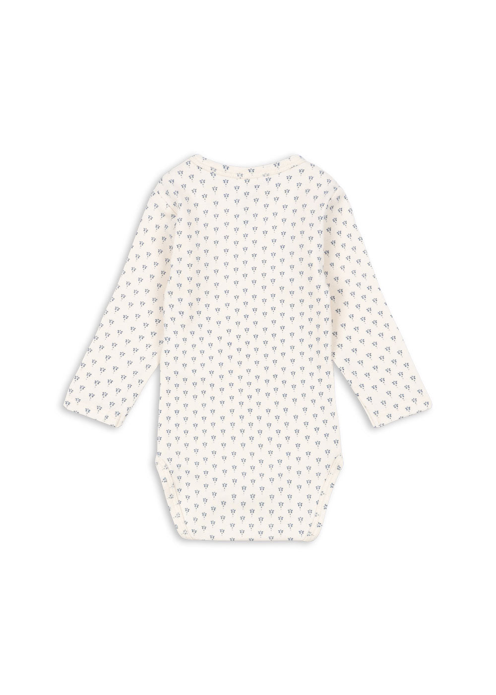 Denne body i økologisk bomuld med stræk er et blødt og utrolig behageligt musthave i din babys garderobe. Med klassisk ribkant i halsen og praktiske trykknapper på skulderen.