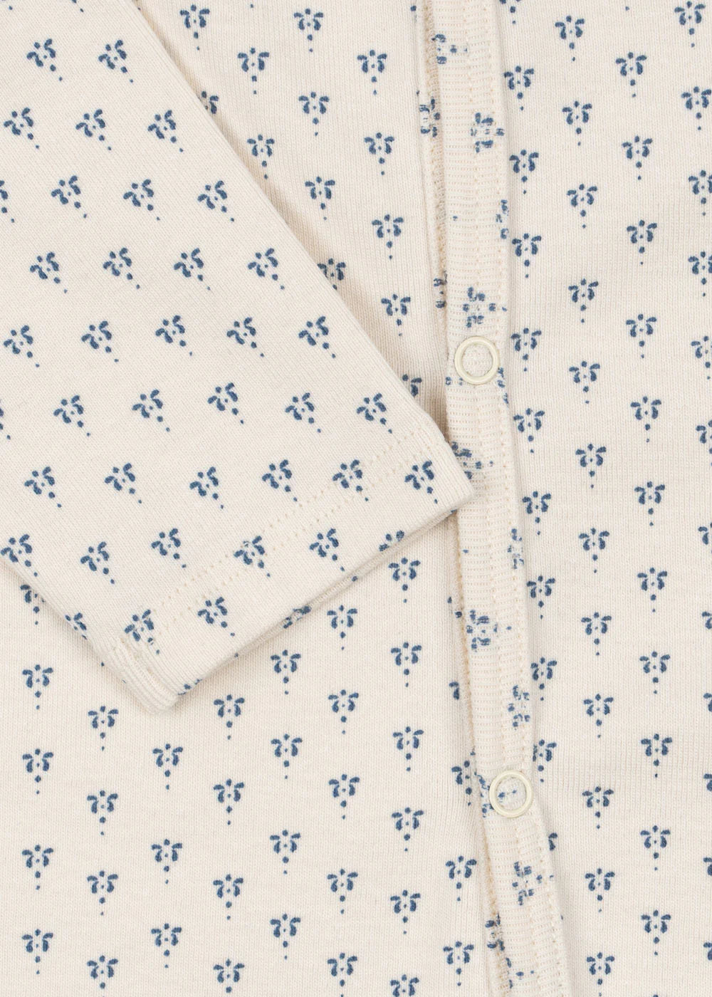 Blød heldragt i økologisk bomuld til nyfødte. Med trykknapåbning i fuld længde foran og ned langs benet, hvilket gør det nemt og bekvemt at skifte din baby.