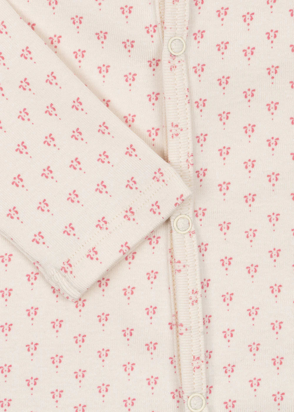 Blød heldragt i økologisk bomuld til nyfødte. Med trykknapåbning i fuld længde foran og ned langs benet, hvilket gør det nemt og bekvemt at skifte din baby.