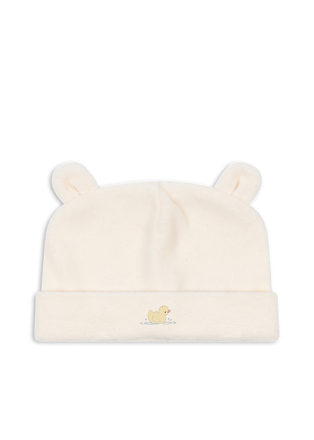 Blød babyhue i en varm bomuldsblanding med en velouragtig struktur.