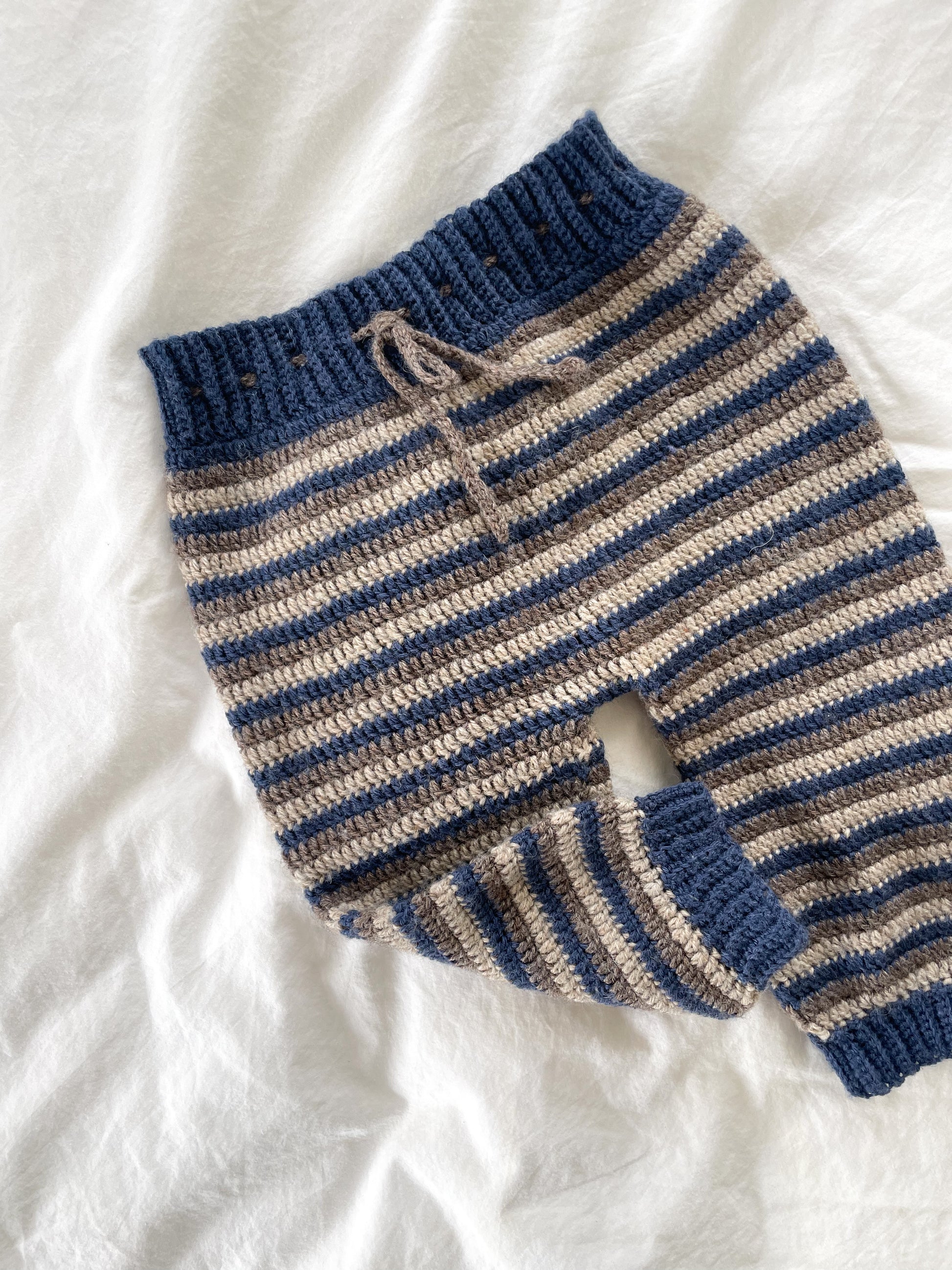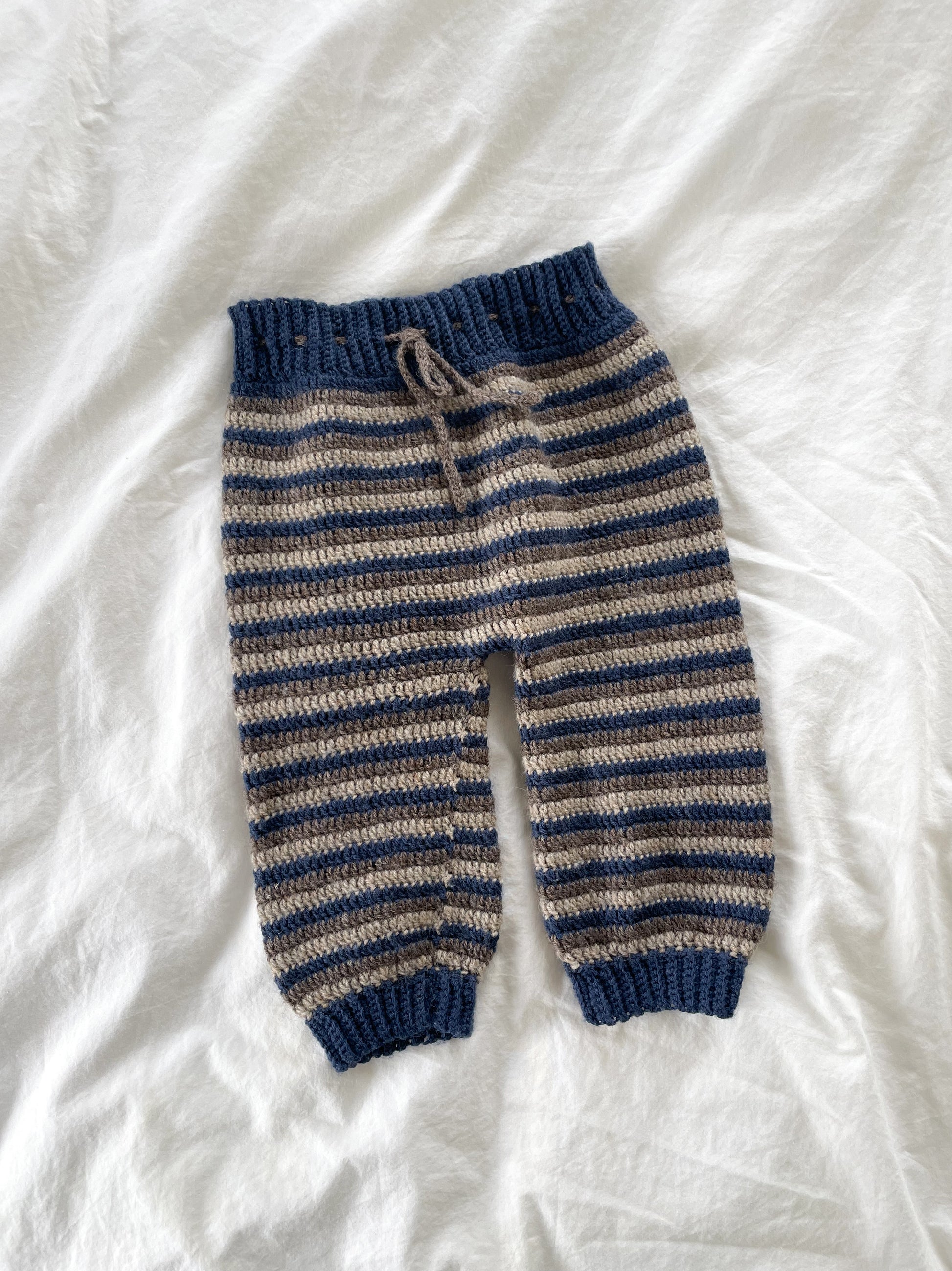 Håndstrikkede stribede bukser, Uld str. 6-9 mdr