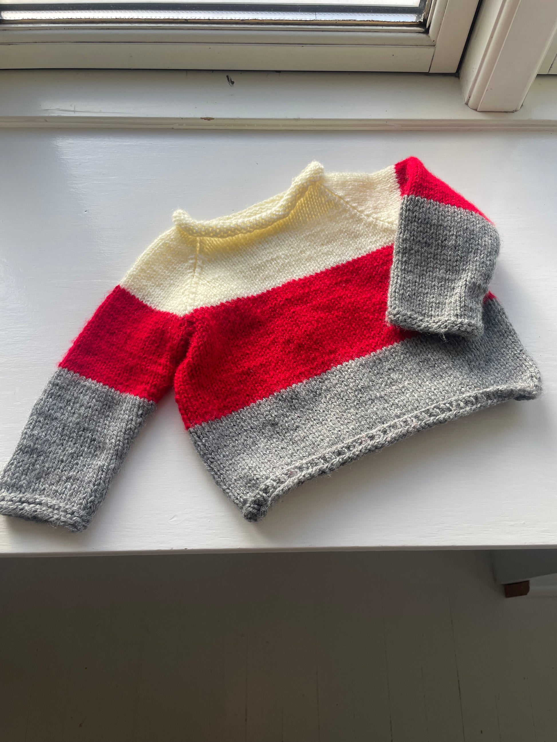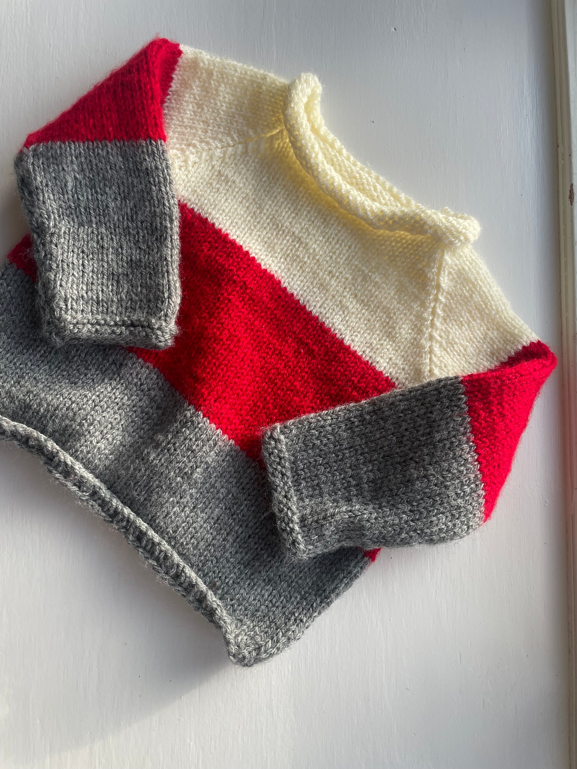 Fin bluse med 3 striber, strikket i 100% uld, dejlig blød.