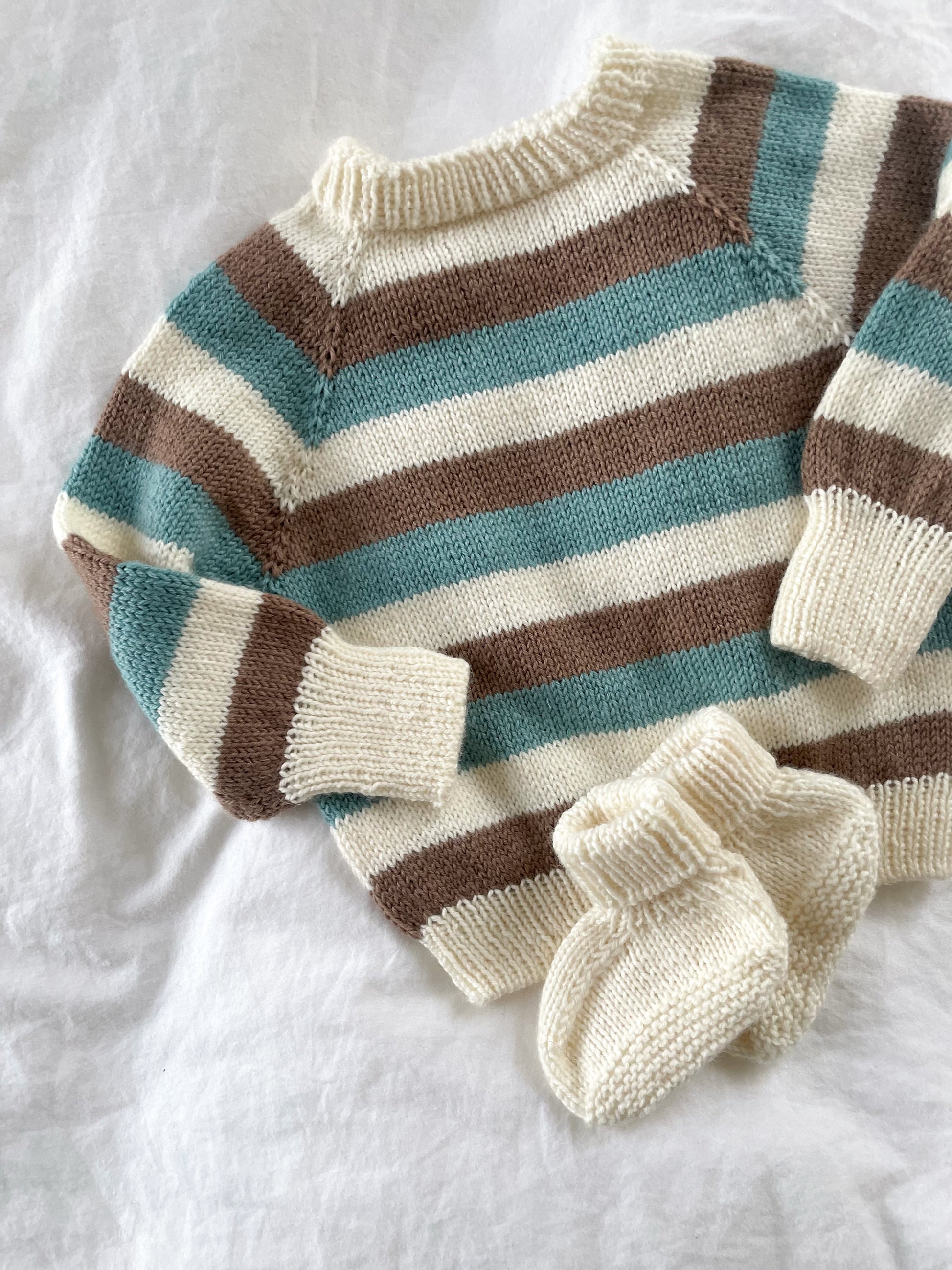 Håndstrikket stribet bluse i uld & kashmir, fv. Azur str. 0-3 mdr