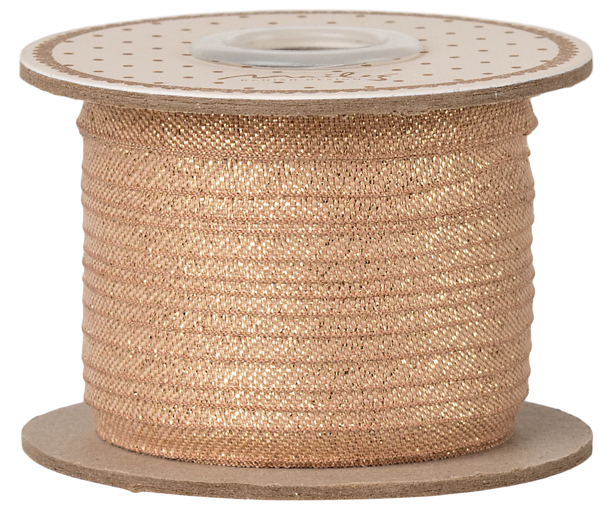 Maileg Bånd på rulle 25 m - Rosa/guld