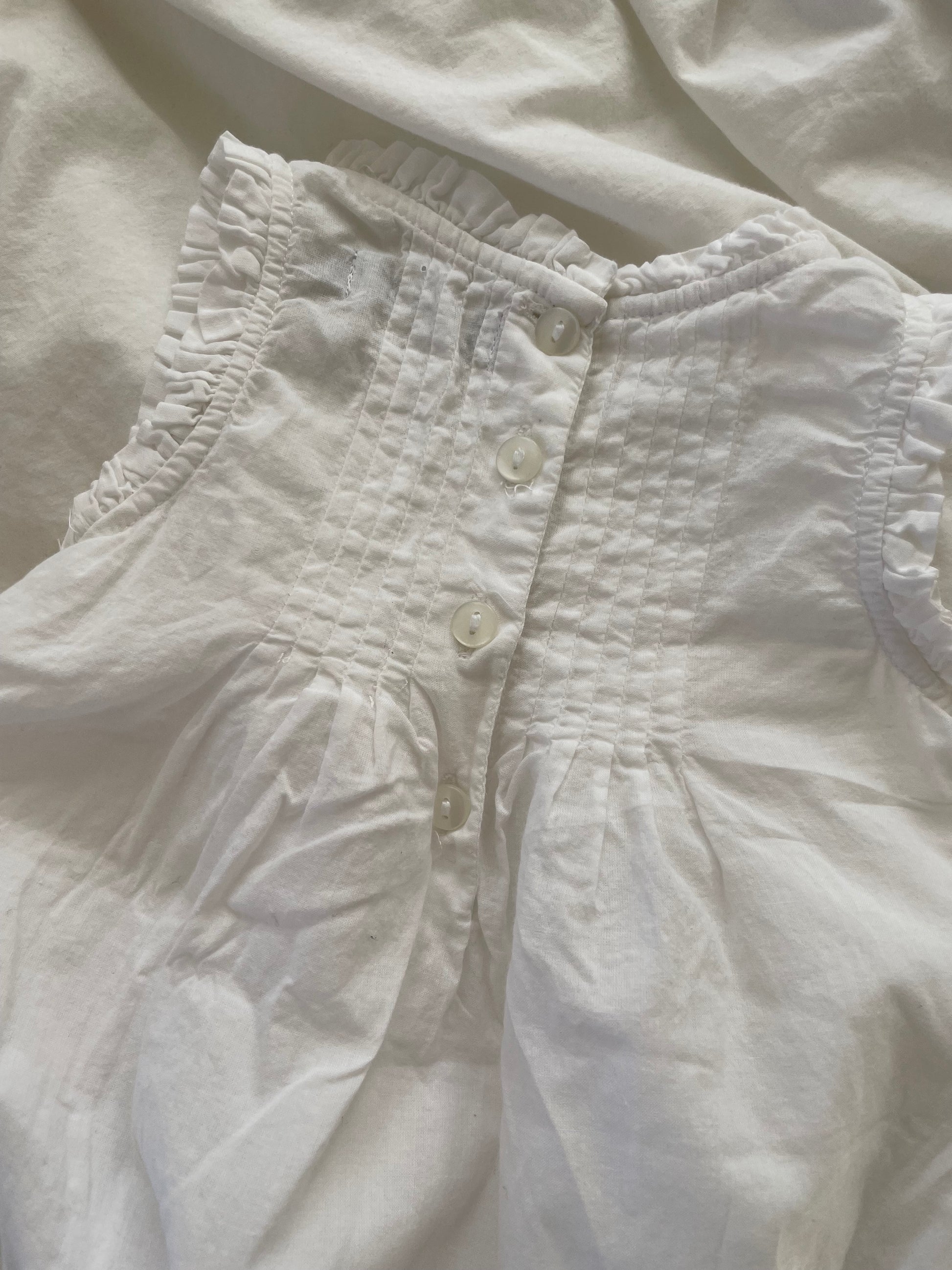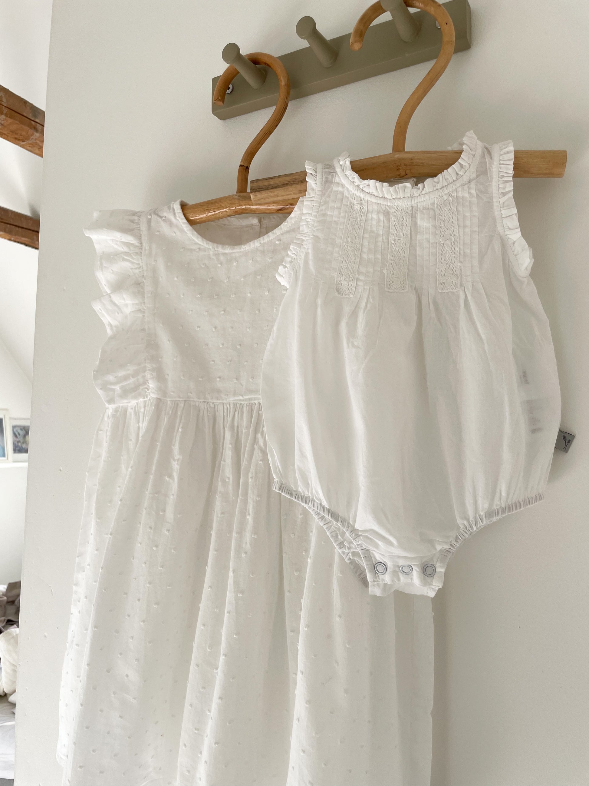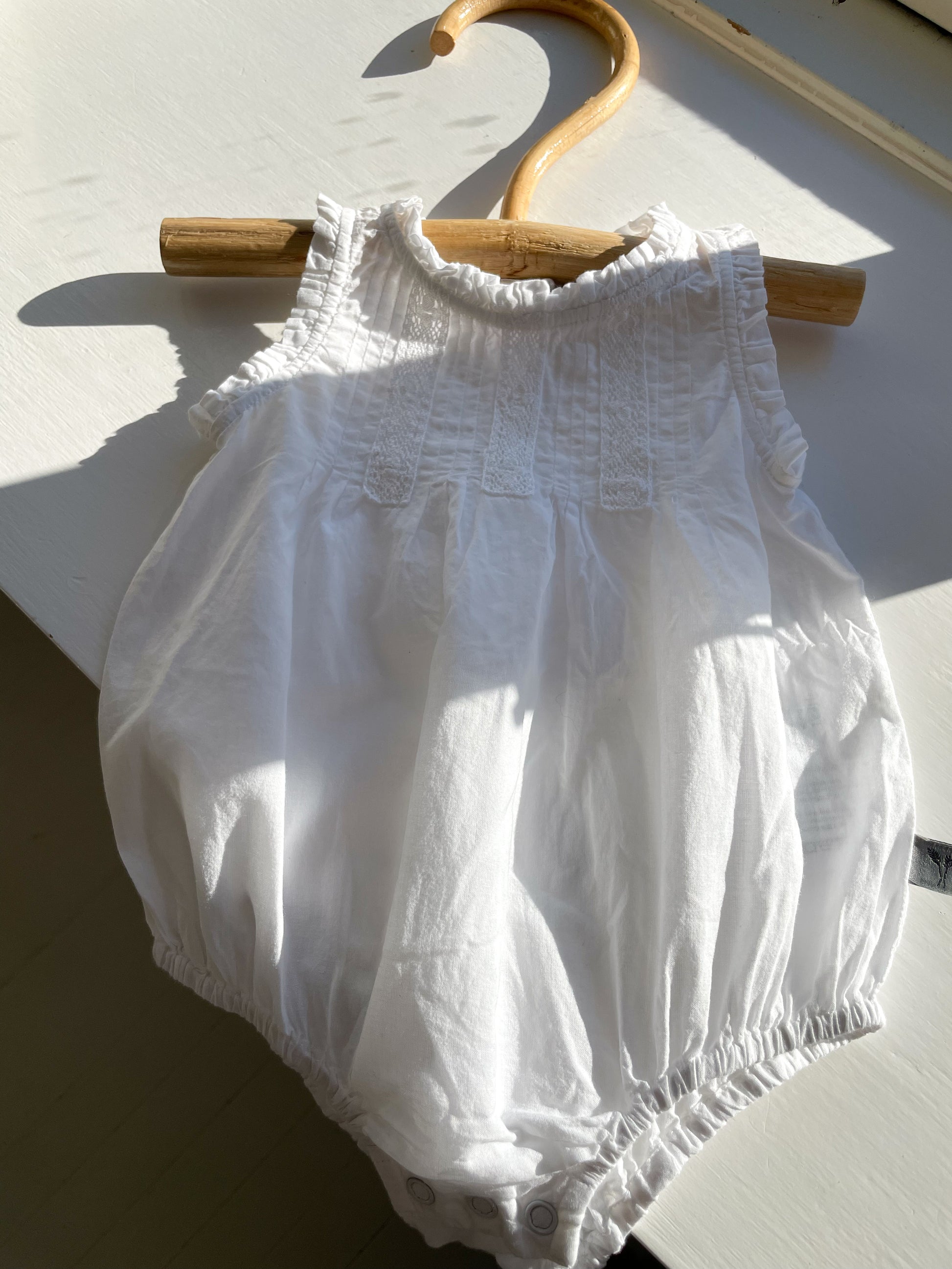 Fineste romper med flæsekant, påsatte broderier og trykknapper ml. benene.