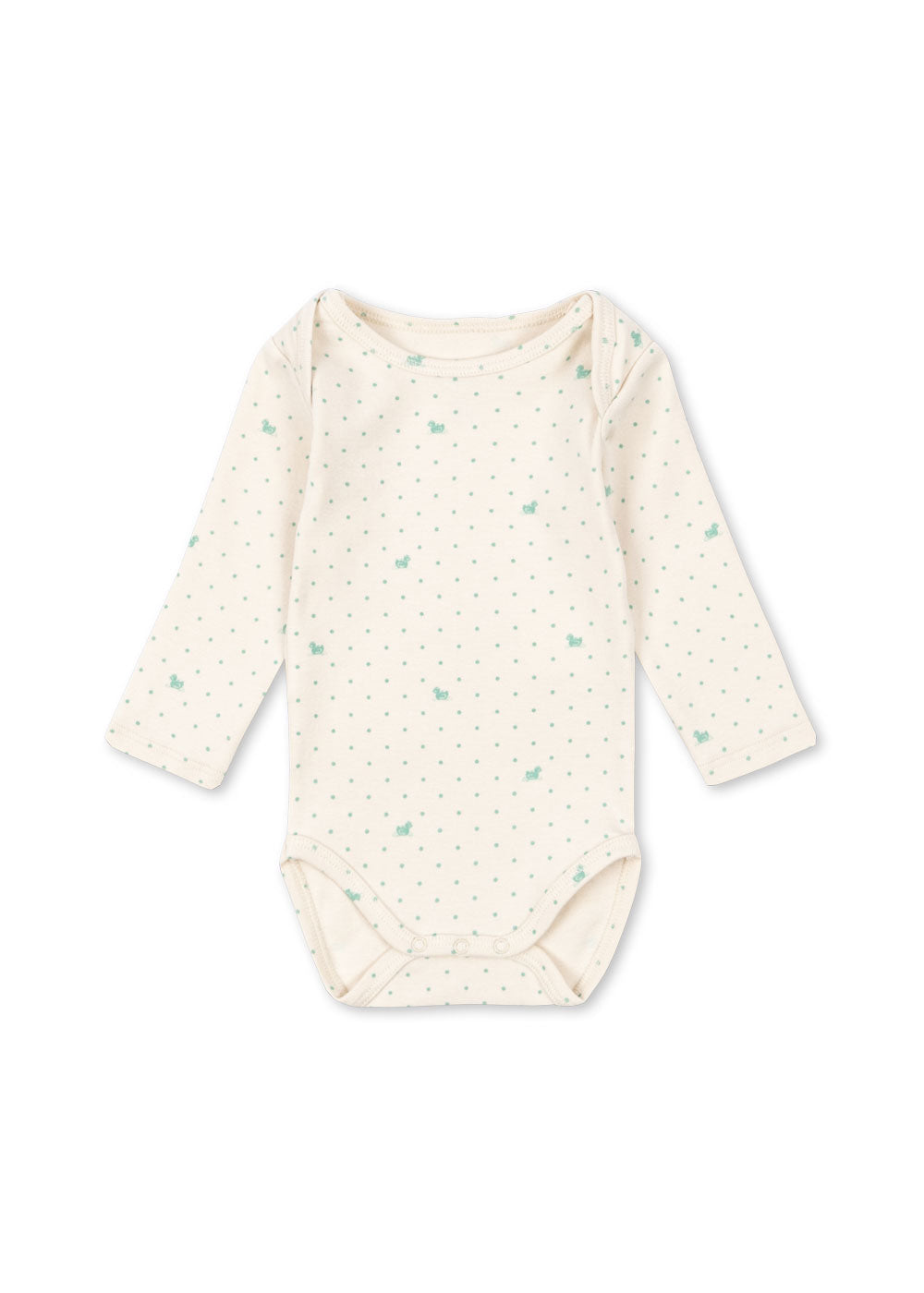 Denne body i økologisk bomuld med stræk er et blødt og utrolig behageligt musthave i din babys garderobe. Med klassisk ribkant i halsen og praktiske trykknapper på skulderen.