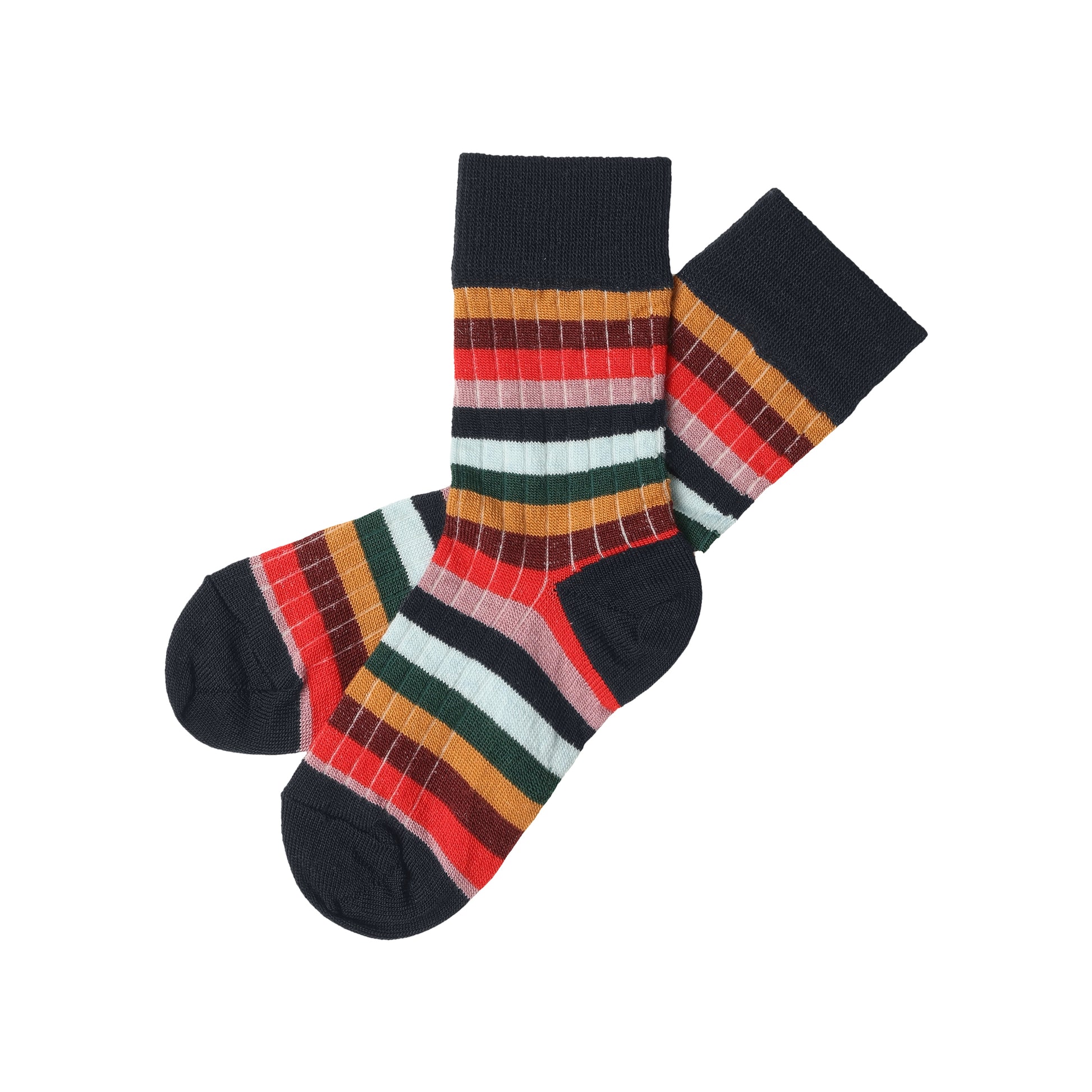 FUB Classic Stripe Socks - Wool - Dark Navy/Multi Stripe