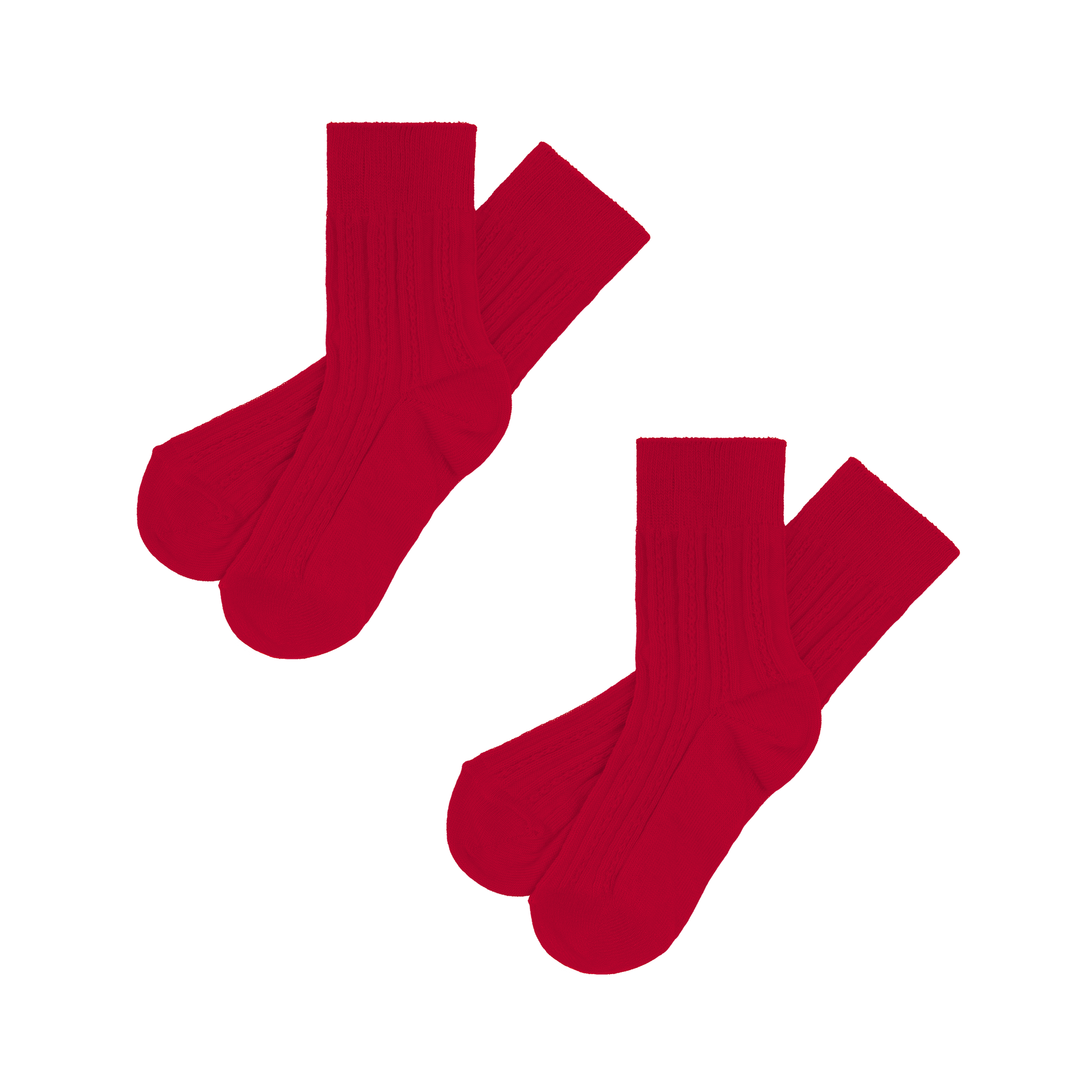 Fine strømper i pointelle, lavet af bomuldsgarn mikset med elastan for at sikre holdbarhed og god pasform. De er strikket i pointelle og har forstærkning ved tå og hæl samt en fast dobbeltkant foroven for ekstra komfort.