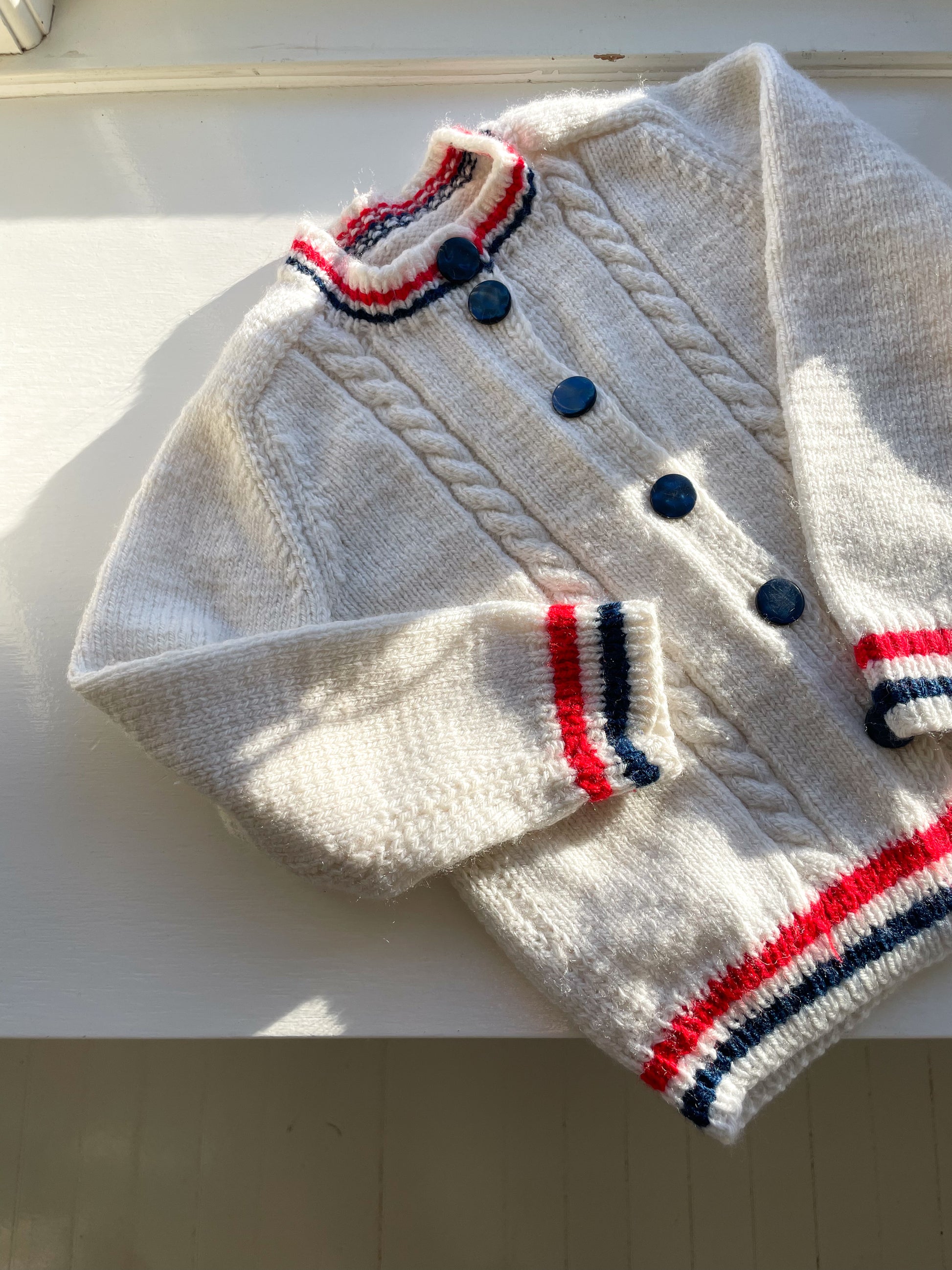 Håndstrikket cardigan i uld str. 9-12 mdr