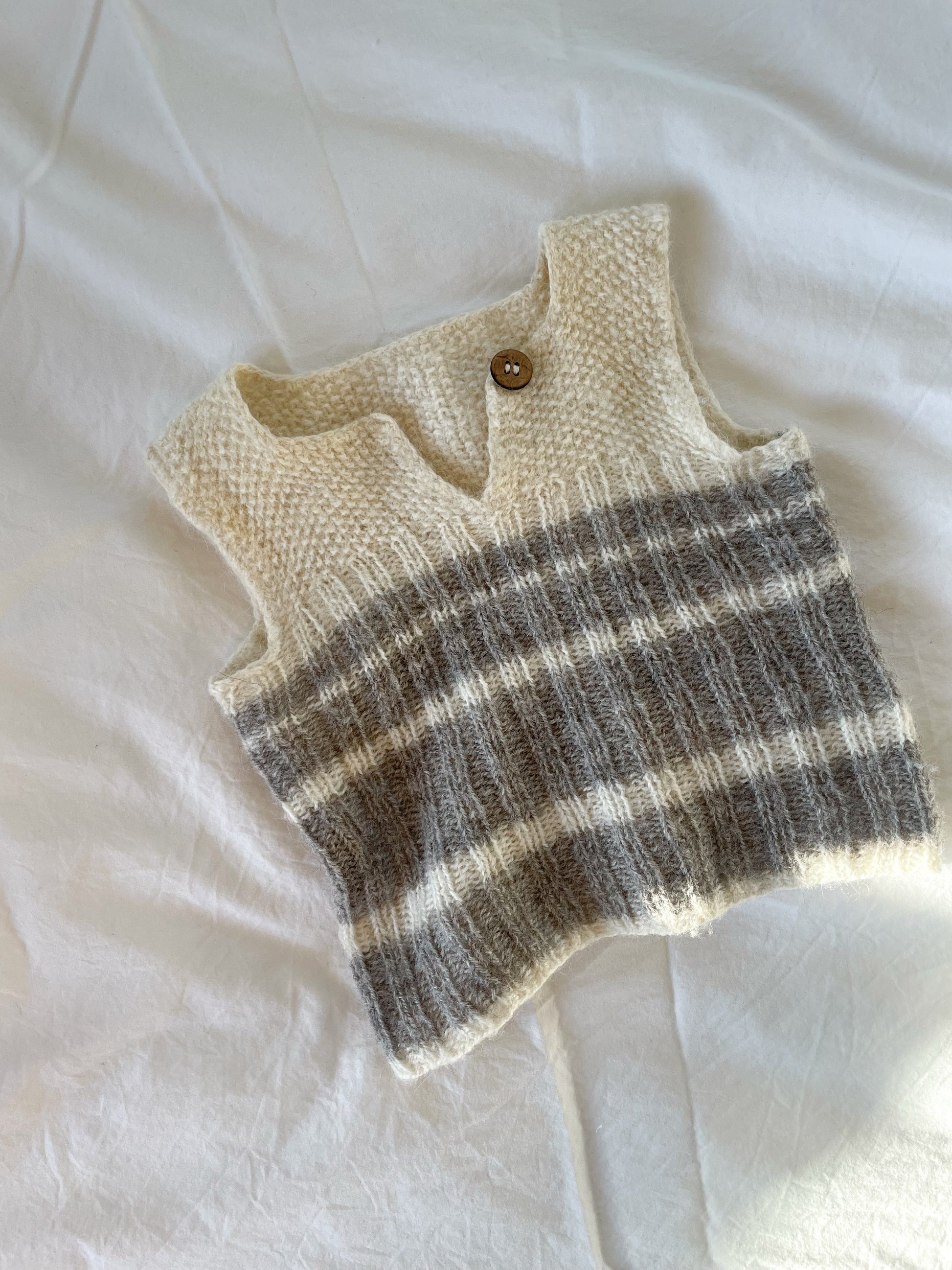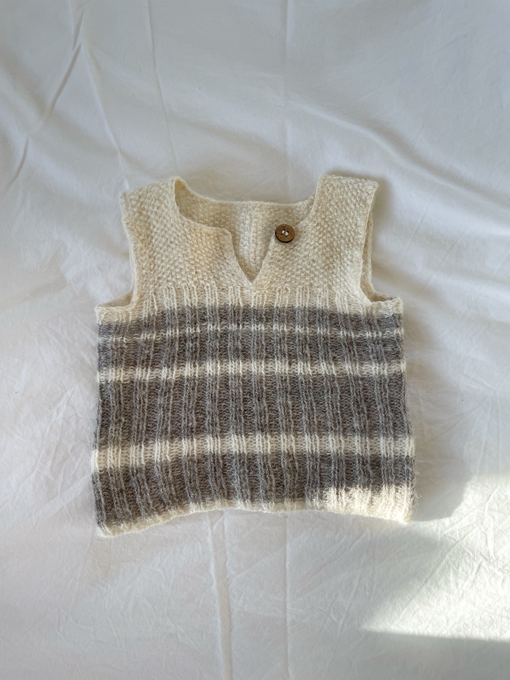 Håndstrikket vest i uld str. 0-3 mdr