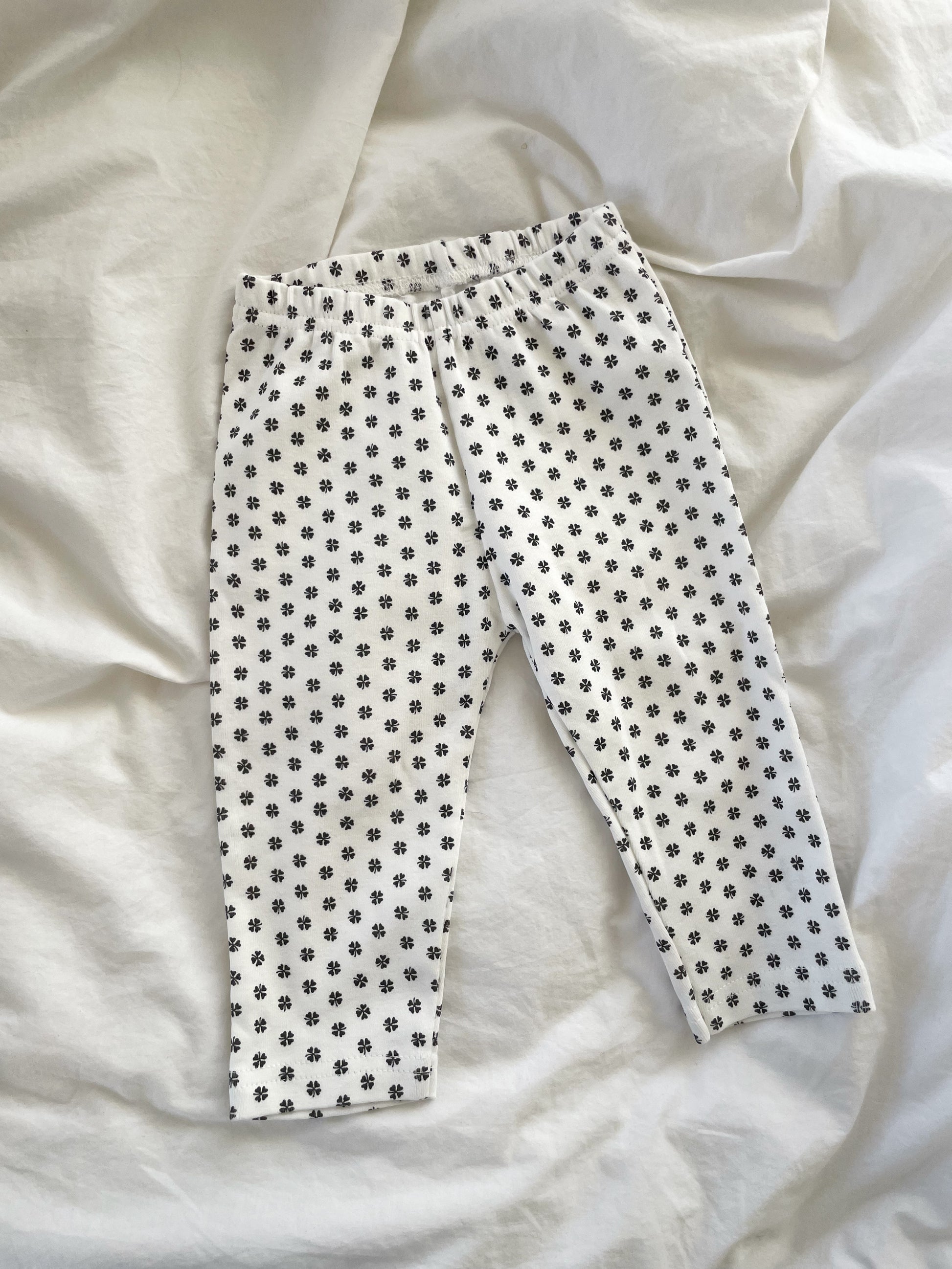 Søde bukser med kløverprint i mørkegrå. 100% økologisk bomuld