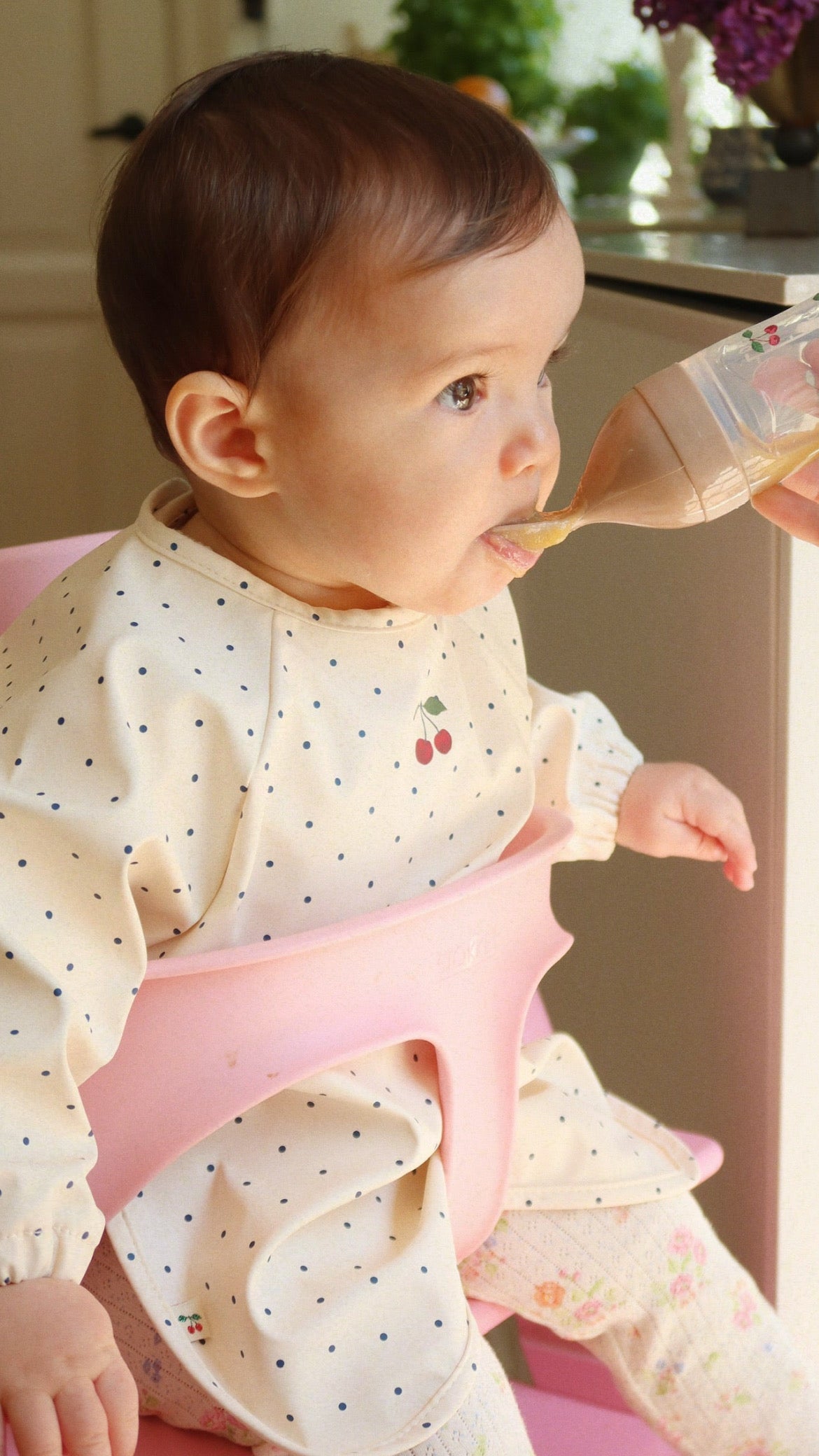Søde og praktiske hagesmække i en praktisk vandafvisende kvalitet, der er nem at rengøre. Hagesmækken har ærmer, så barnets tøj er godt beskyttet, og justerbar trykknapåbning bagpå.