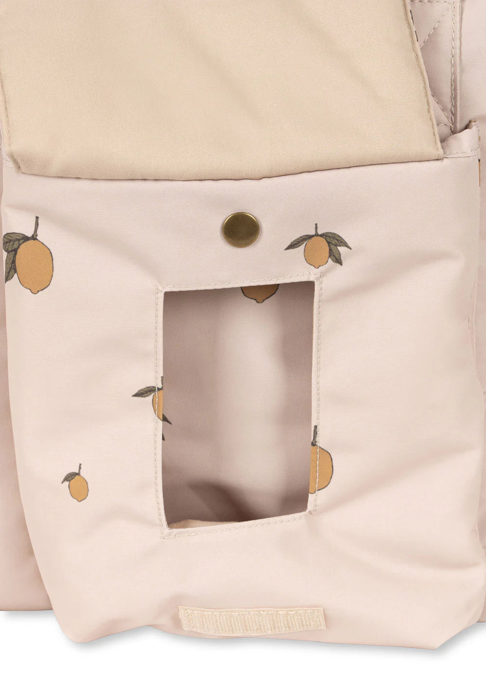 All you need pusletasken lukkes med lynlås og har D-ringe på hver side, som nemt kan fastgøres til barnevognens håndtag eller stel med barnevognskroge. Kvaliteten er både blød og smudsafvisende, hvilket gør tasken til et slidstærkt musthave for alle forældre.
