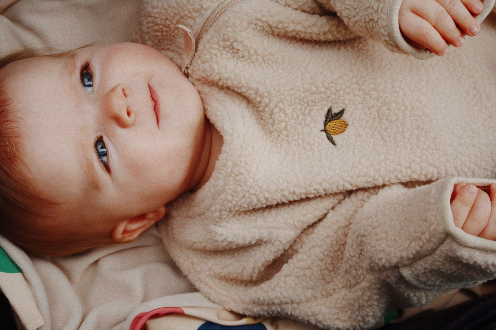 Heldragt i behagelig fleece. Med ombuk ved hænder og fødder, så dit barn kan holde varmen.