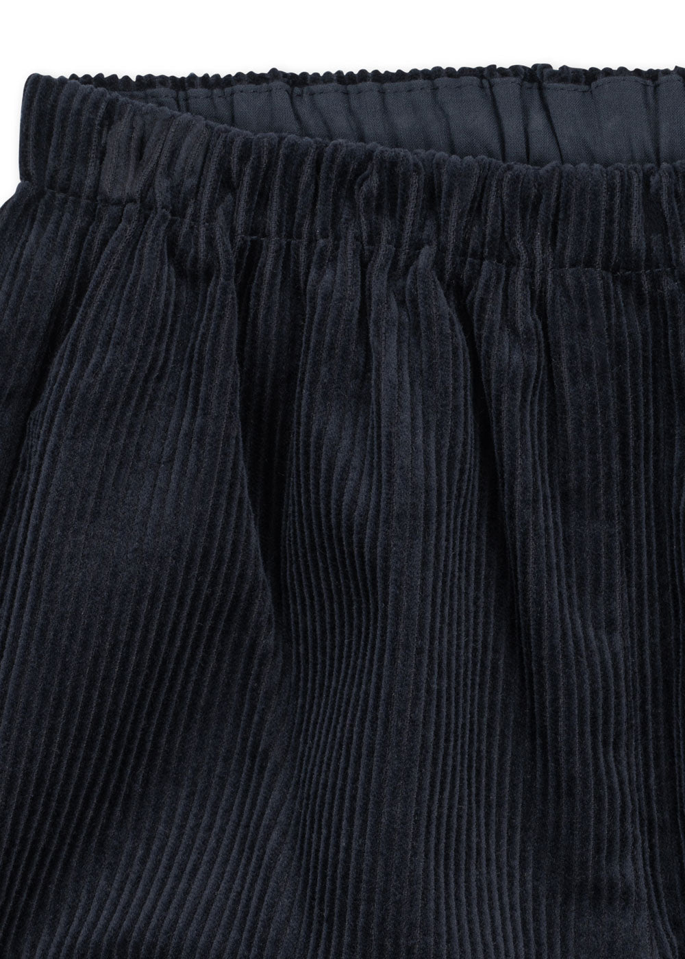 Bløde fløjlsbukser i en kraftig kvalitet. Afslappet pasform med lige ben og elastik i taljen.