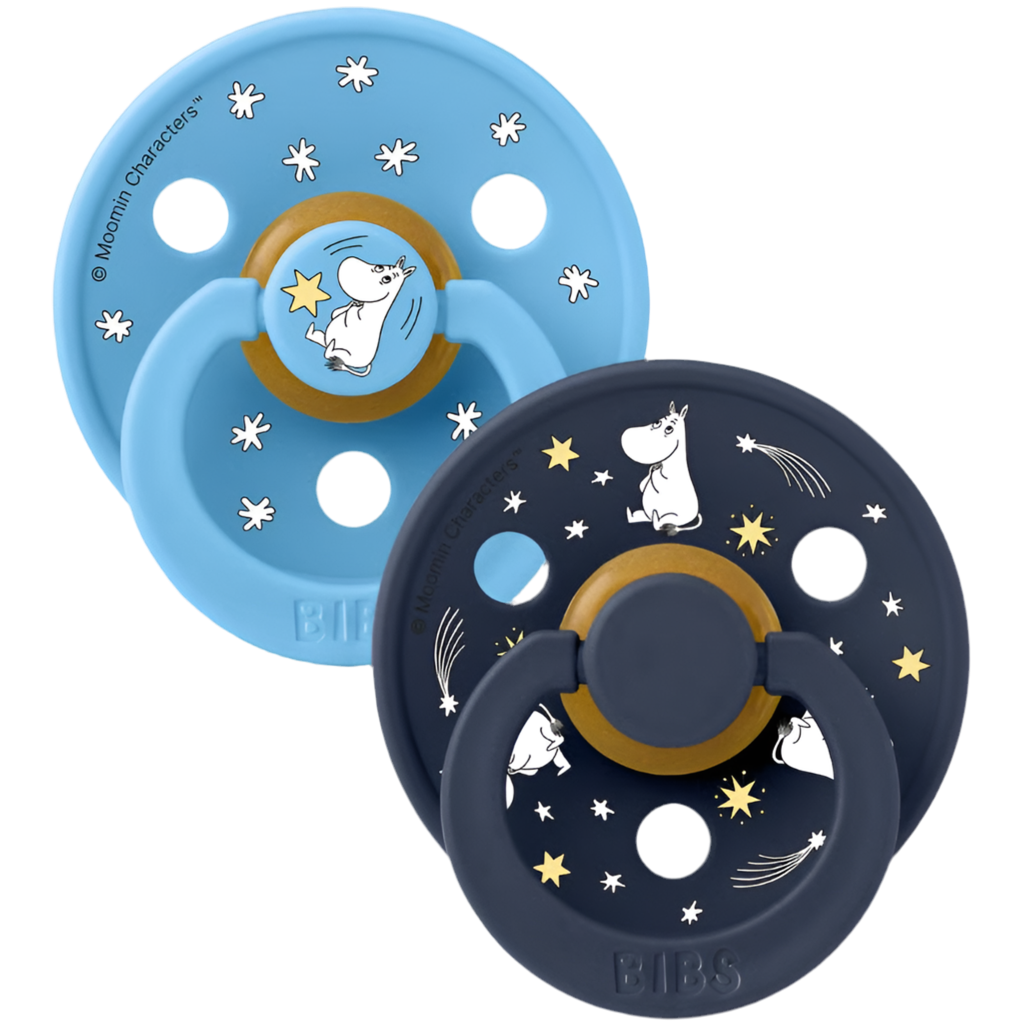 Den originale BIBS-sut – nu med et strejf af Moomin-magi. BIBS x Moomin Colour Sut forener vores ikoniske design med de elskede Moomin-figurer og bringer personlighed, nostalgi og charme ind i hverdagens rutiner. Sutten har det karakteristiske runde BIBS-skjold med tre udluftningshuller og en rund BIBS-indgraveret ring. Den er udstyret med en rund nipple i naturgummilateks, som understøtter en naturlig sutteteknik. Skjoldet er fremstillet af 100 % fødevaregodkendt materiale og er designet og produceret i Danmark/EU. Fri for BPA og ftalater. Overholder den europæiske standard EN 1400+A2.
