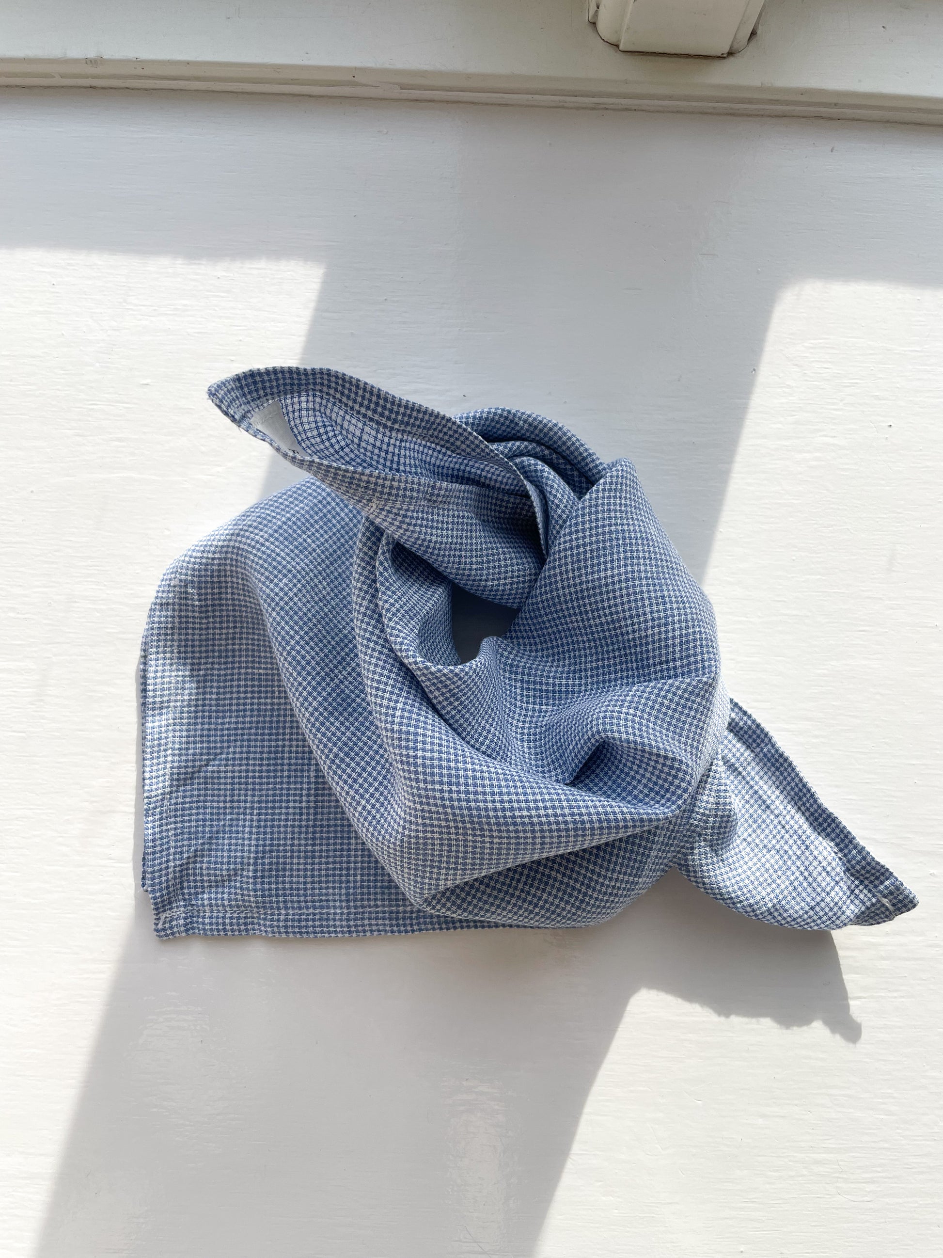 Dette bandana kan bruges om halsen eller som hårbånd og har fine blå/hvide tern.