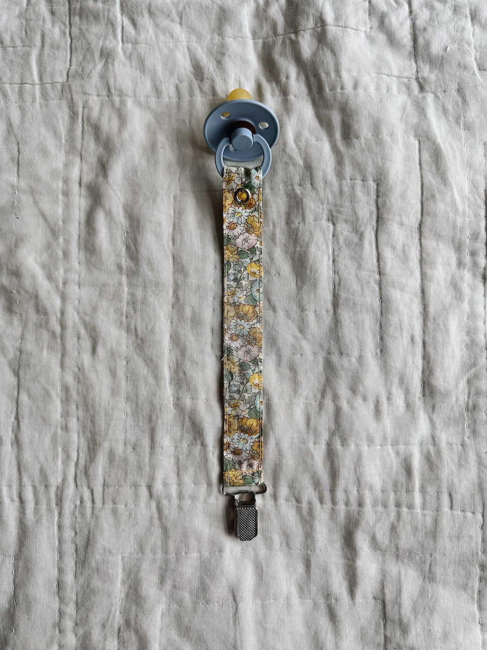 En sød suttesnor i vores nye Sunkissed lavet af økologisk Liberty Tana Lawn bomuld. Ideel til at holde fast i din babys sut, så den ikke falder på gulvet eller bliver væk. Et musthave til de travle dage med en baby!