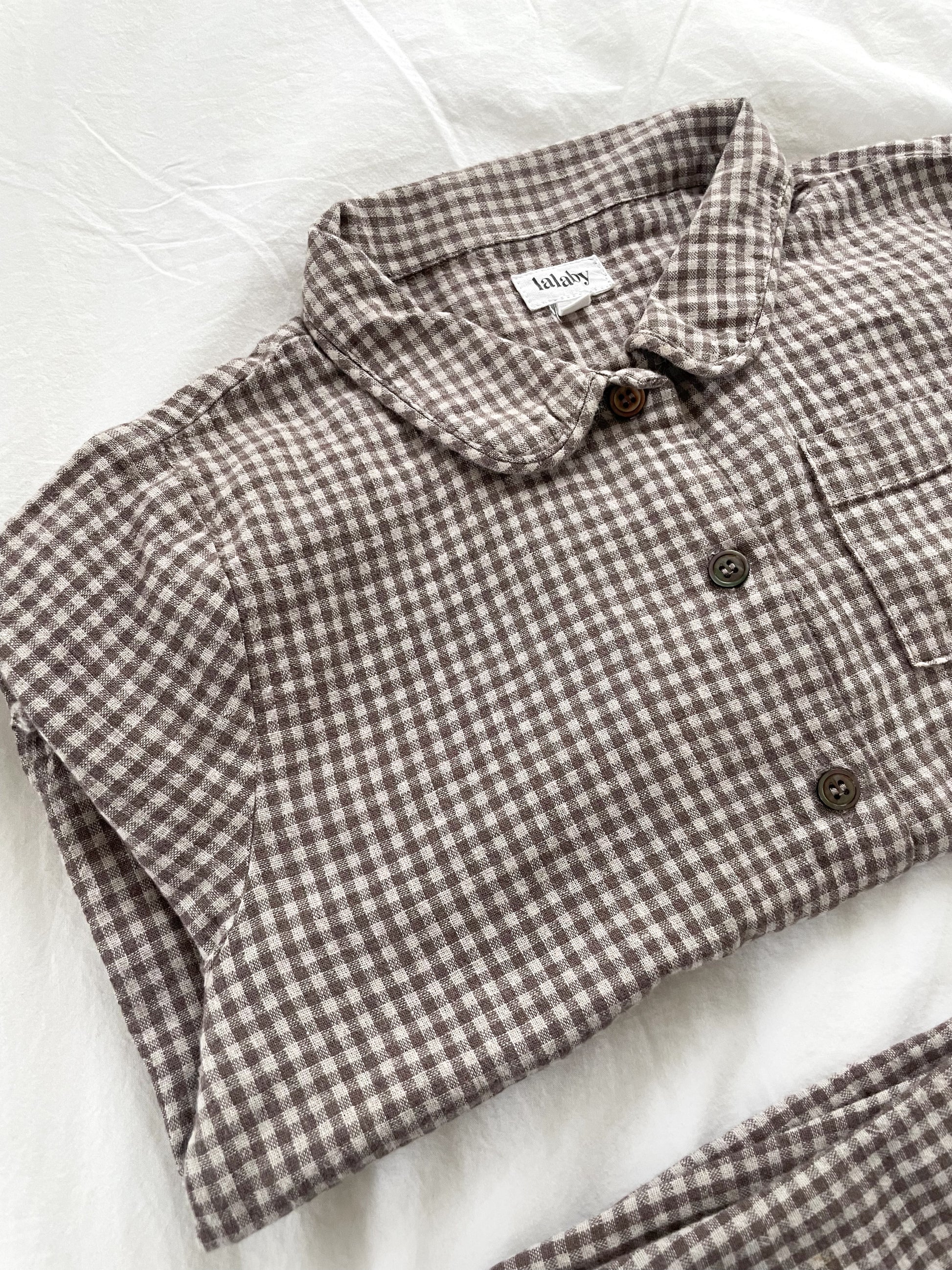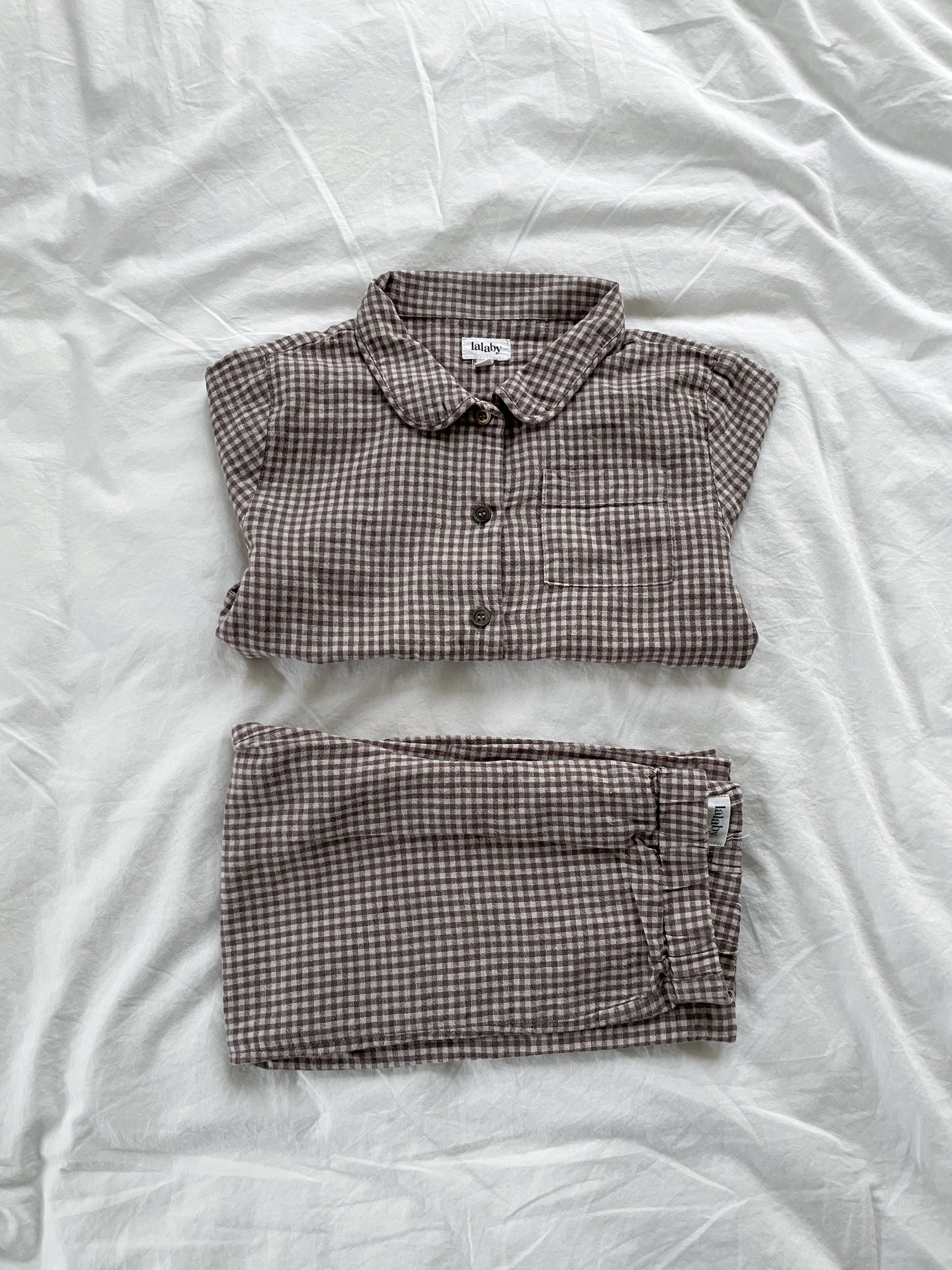 Klassisk og tidløs pyjamas fra Lalaby i blød ternet bomuld & hør.
