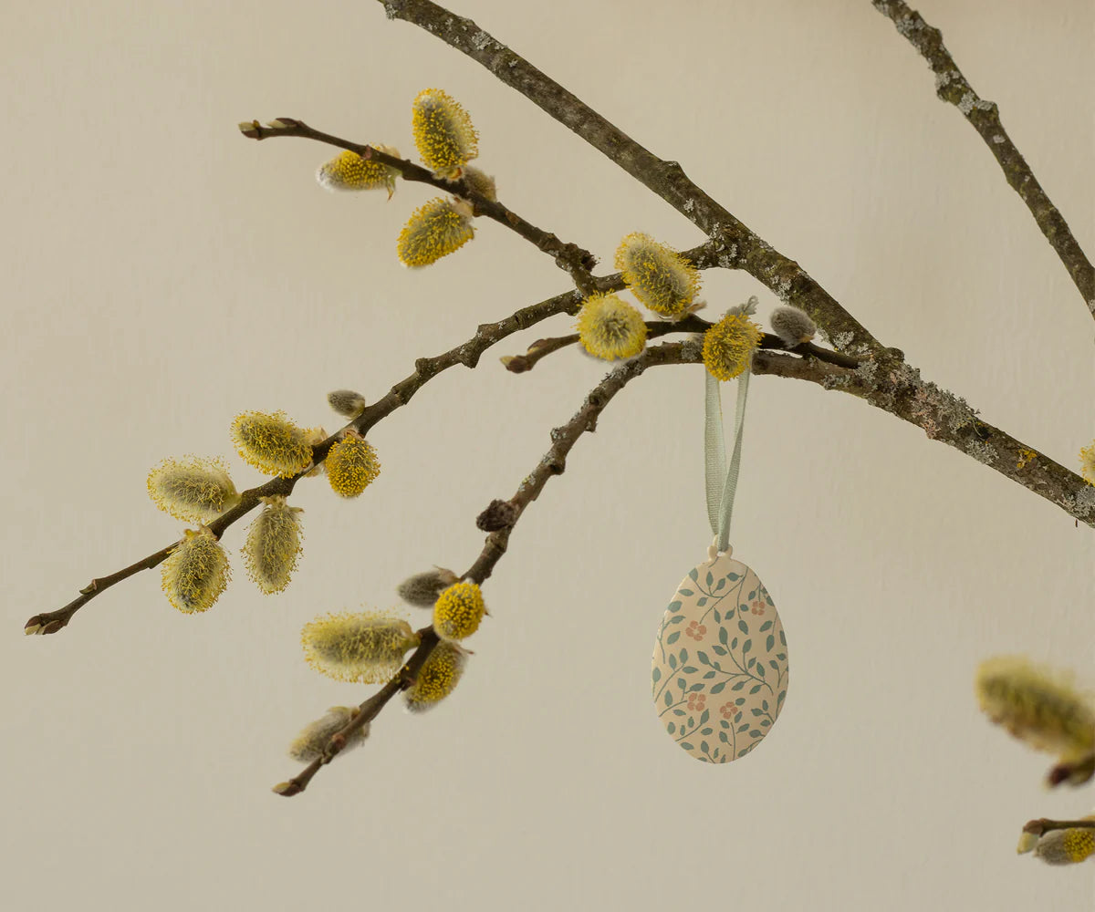 Enkelt og fint metalophæng med håndmalede detaljer. Påskeæggene er smukke som pynt på en gren eller som dekoration på påskebordet. Bland de forskellige farver med andet Maileg påskepynt for at fuldende påskeudtrykket.