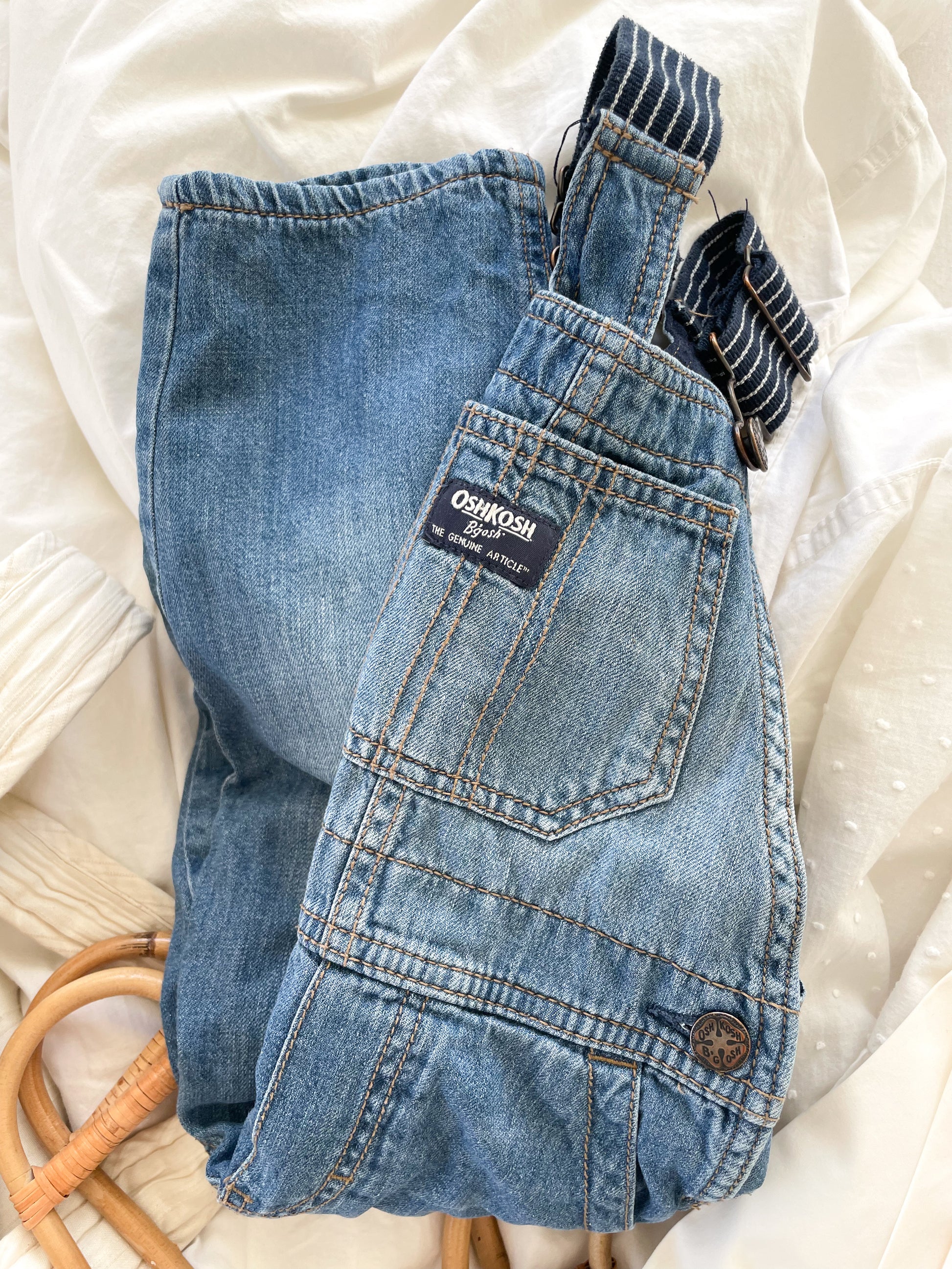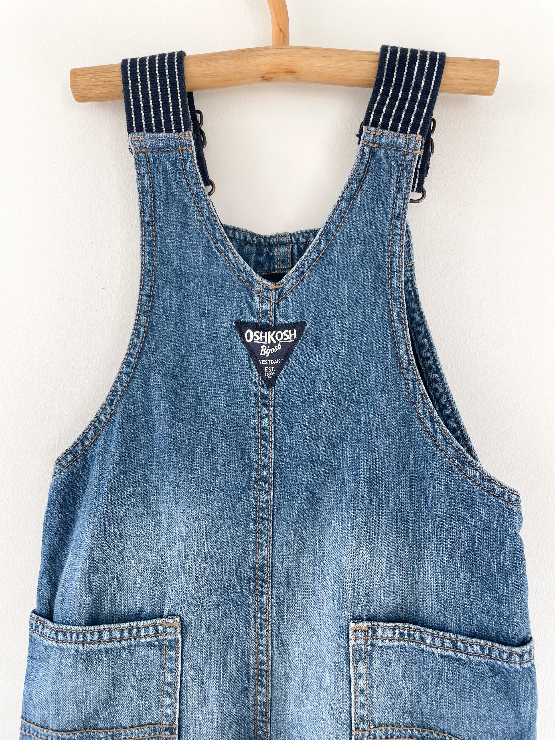 Overalls fra OshKosh med blødt indvendigt foer - og justerbare seler med striber.