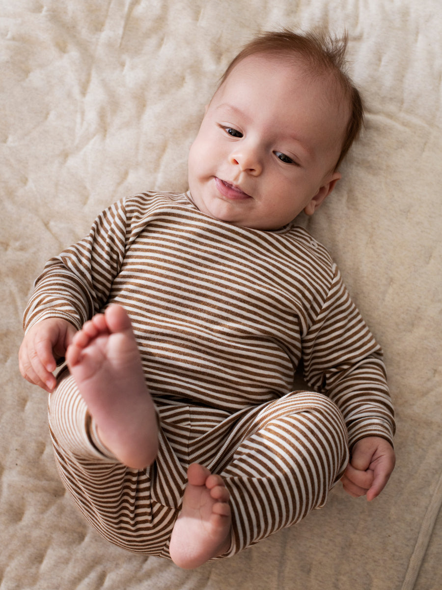 Leggings i smuk mandelbrun og off-shore fra Serendipity.