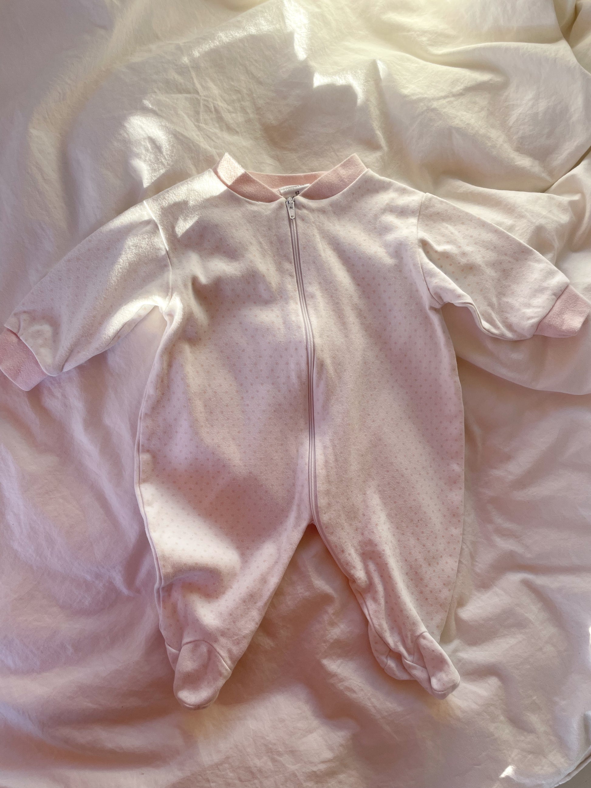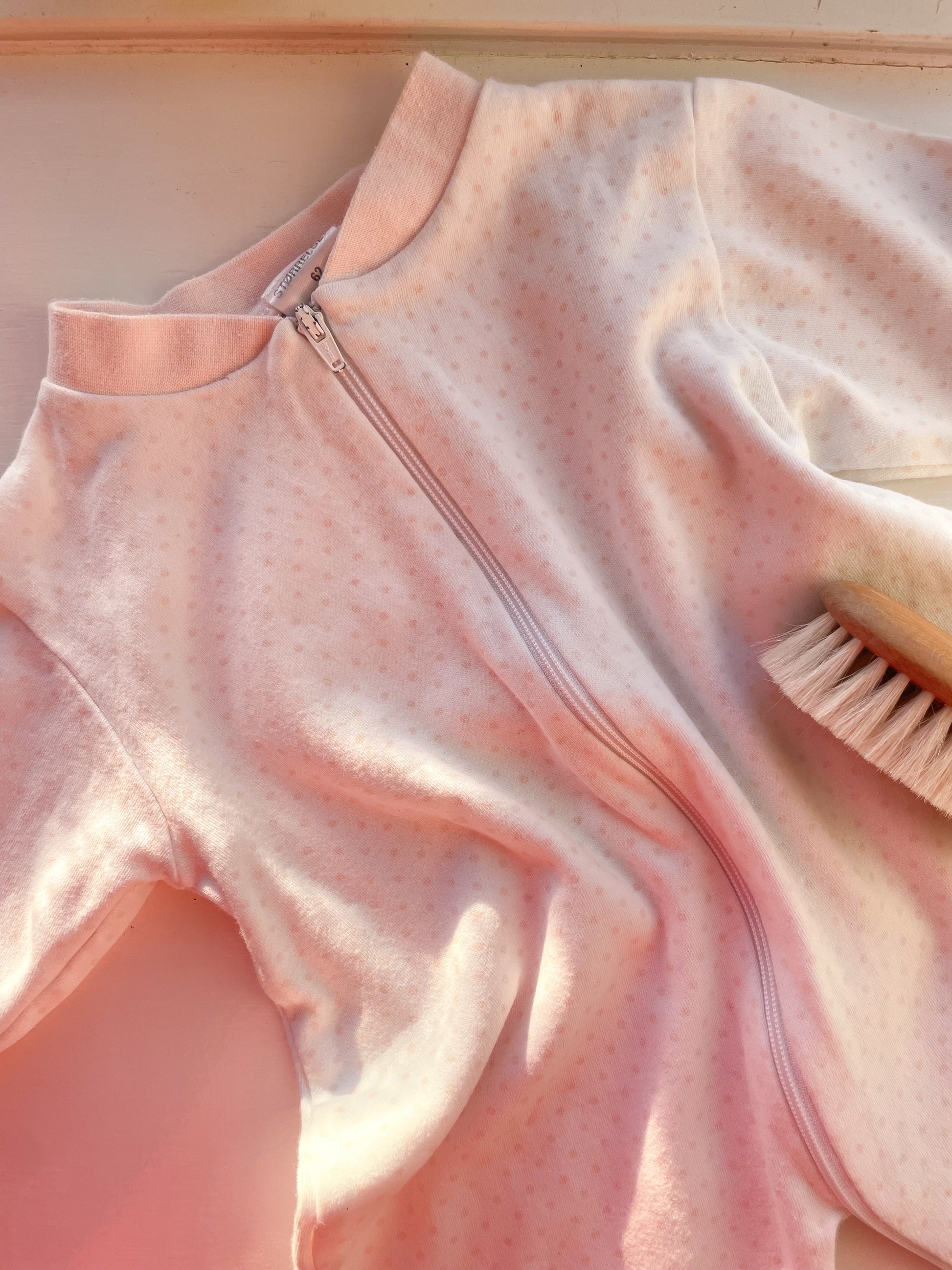 Fineste sparkedragt med prikker og lynlås - uden mærke.